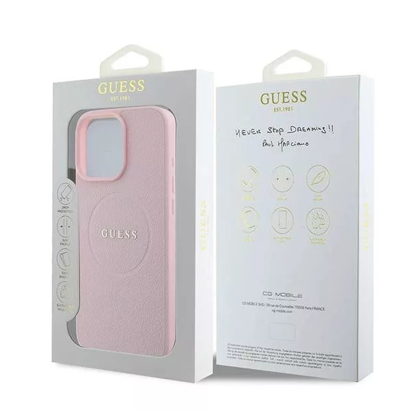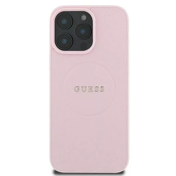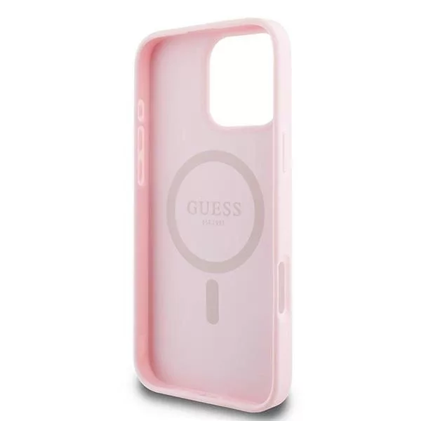 Guess iPhone 16 Pro Magsafe Grained Ring (GUHMP16LPGHSMMP) MagSafe hátlap, tok, rózsaszín