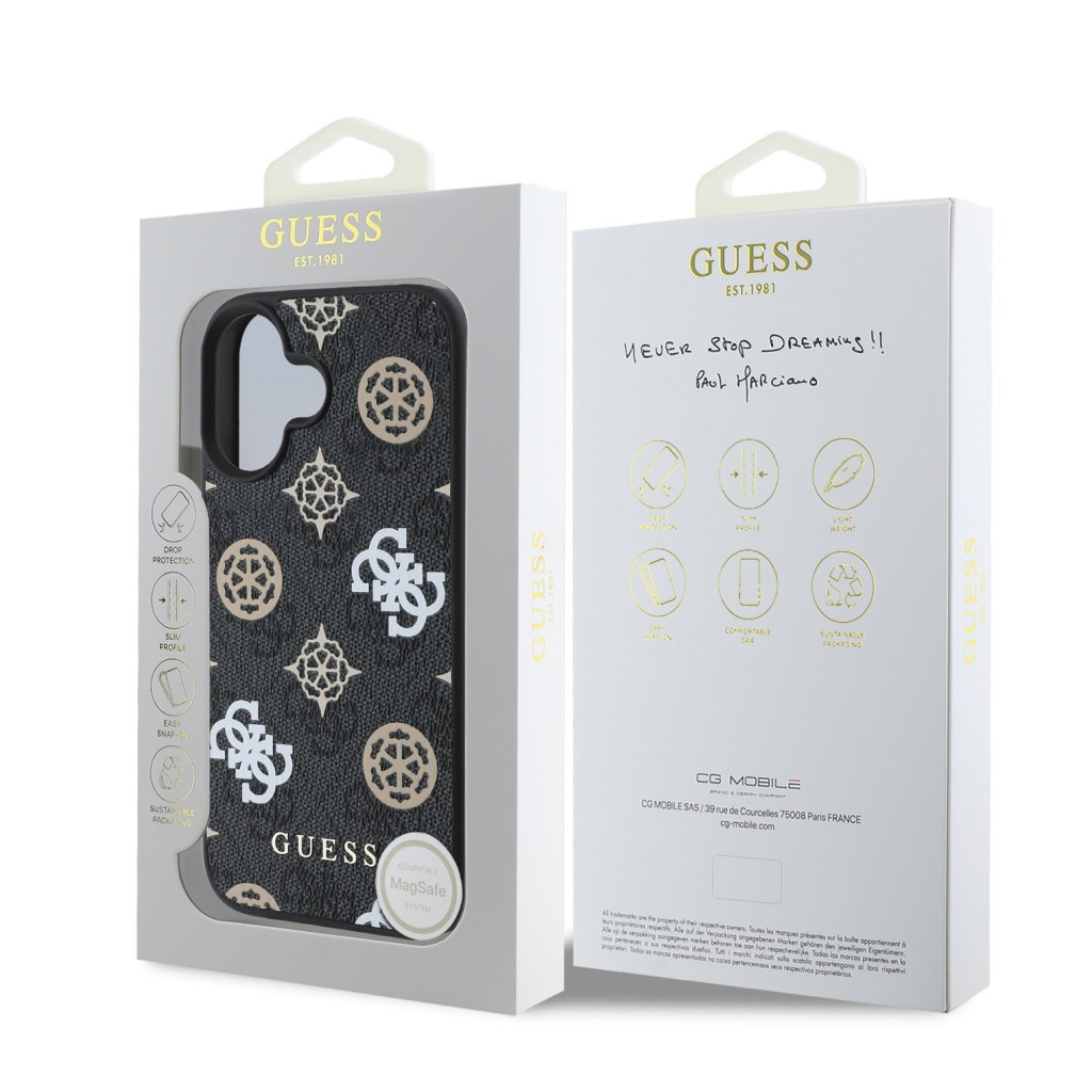 Guess iPhone 16 PU 4G Peony Magsafe Case (GUHMP16SP4PWPK) Magsafe kompatibilis hátlap, tok, fekete