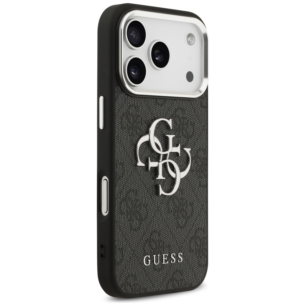 GUESS iPhone 17 Pro GUHCP17LP4G4SMCK (4G PU Leather Case with Big 4G and Classic Logo Silver Metal Camera Frame) tok, fekete