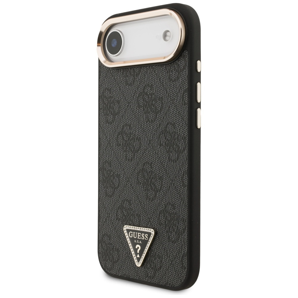 GUESS Magsafe 4G PU Leather Case With Triangle Logo Gold Metal Camera Frame iPhone 17 Air tok, barna