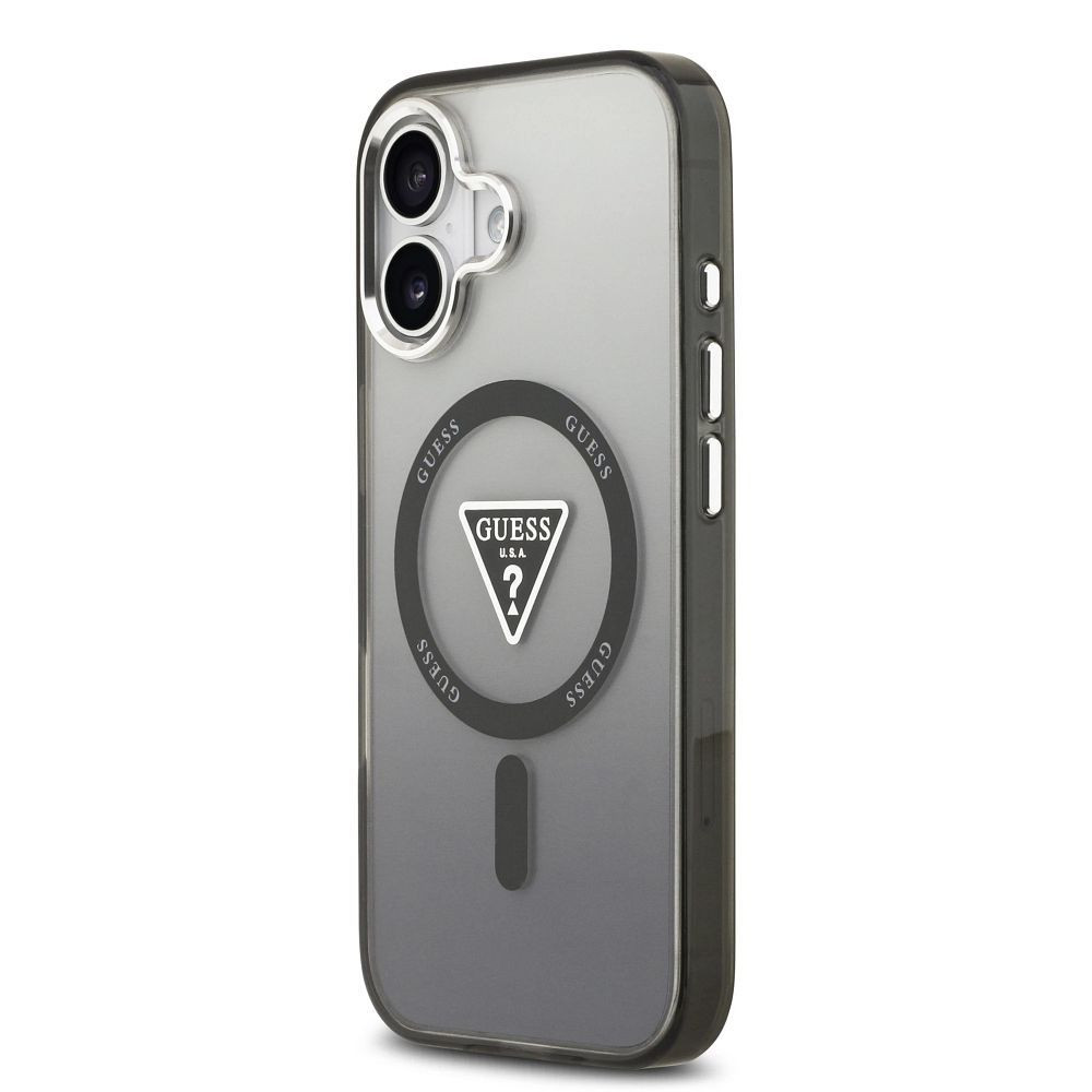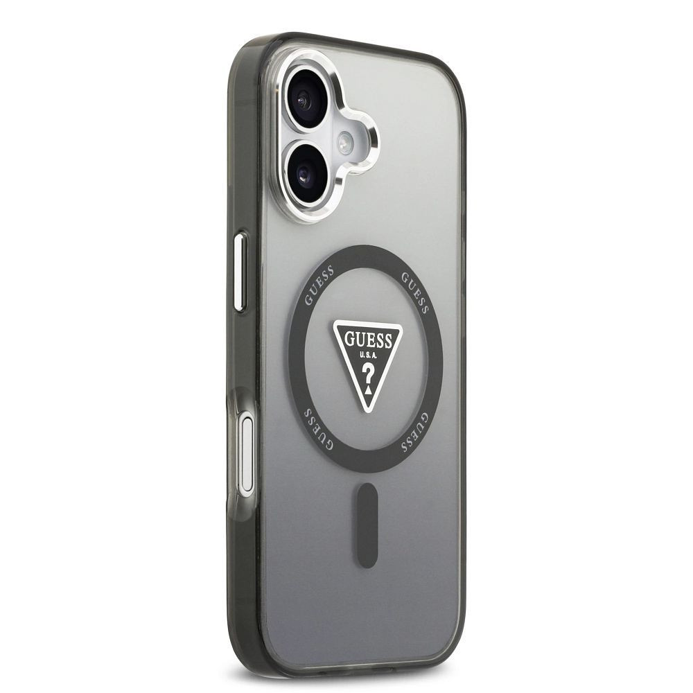 GUESS Magsafe IML Gradient Case With Print Triangle Logo & Metal Camera Buttons iPhone 17 tok, fekete