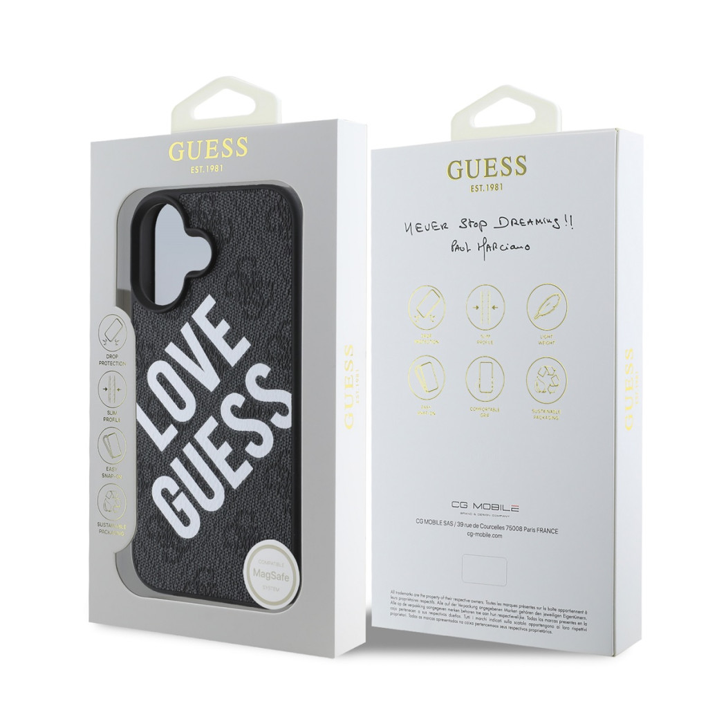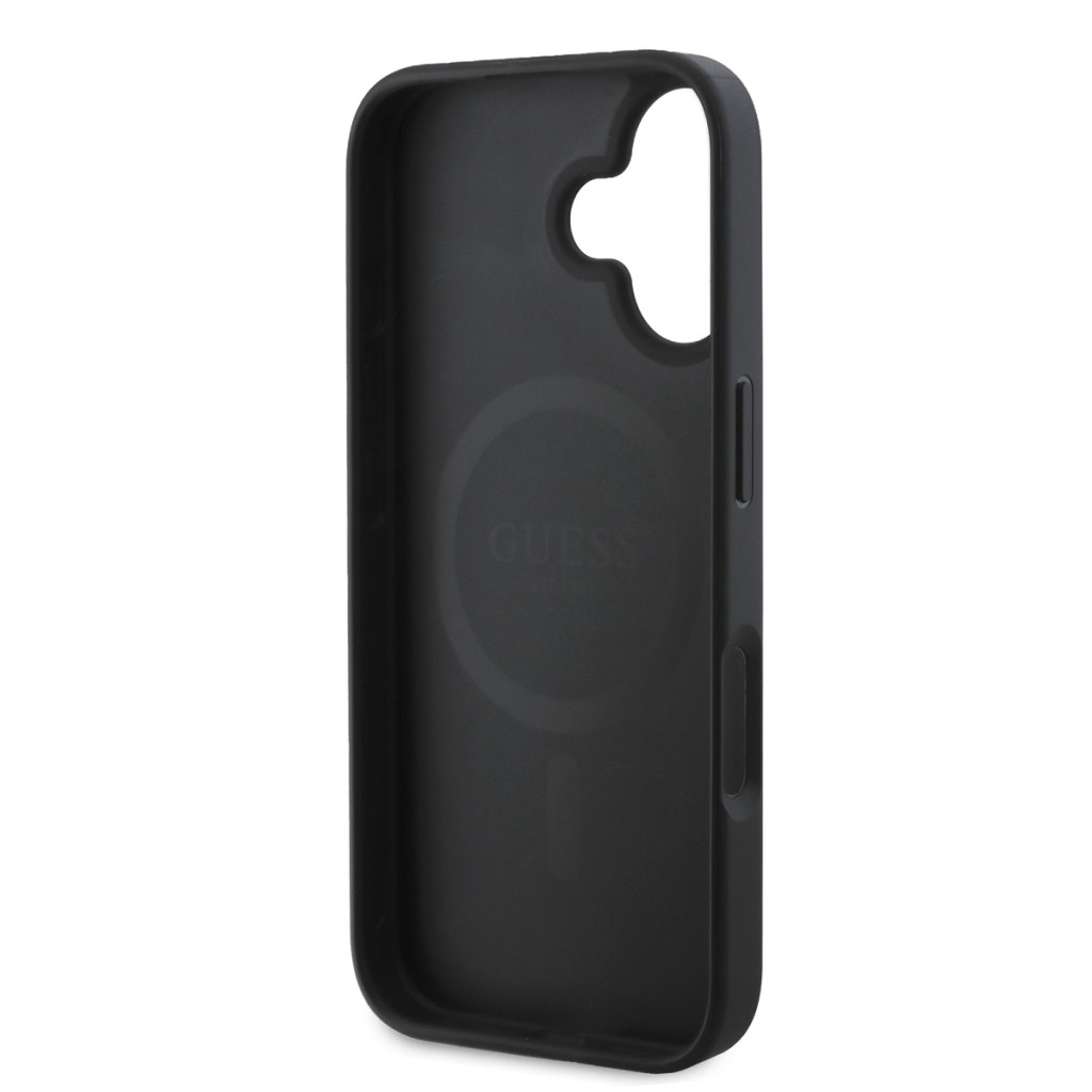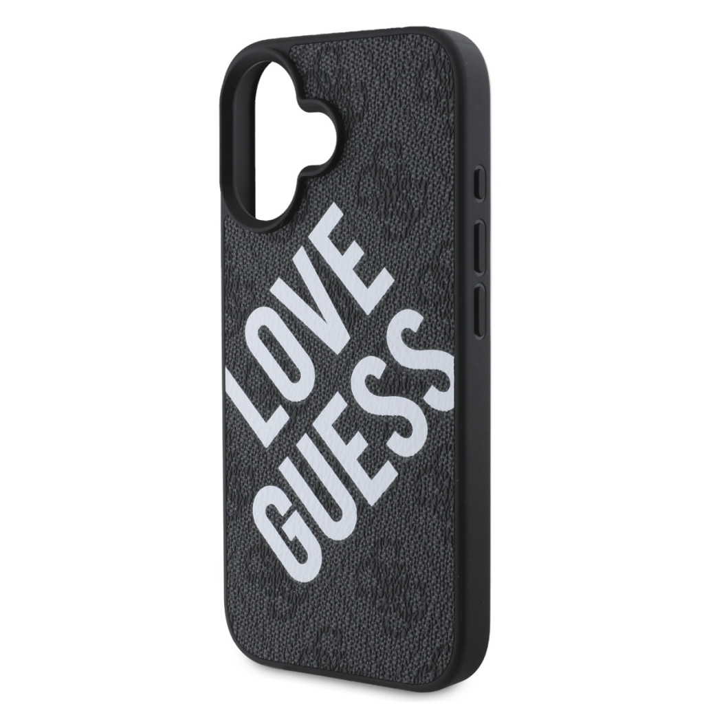 Guess PU Leather 4G Big Love Logo MagSafe iPhone 16 Magsafe kompatibilis hátlap, tok, fekete