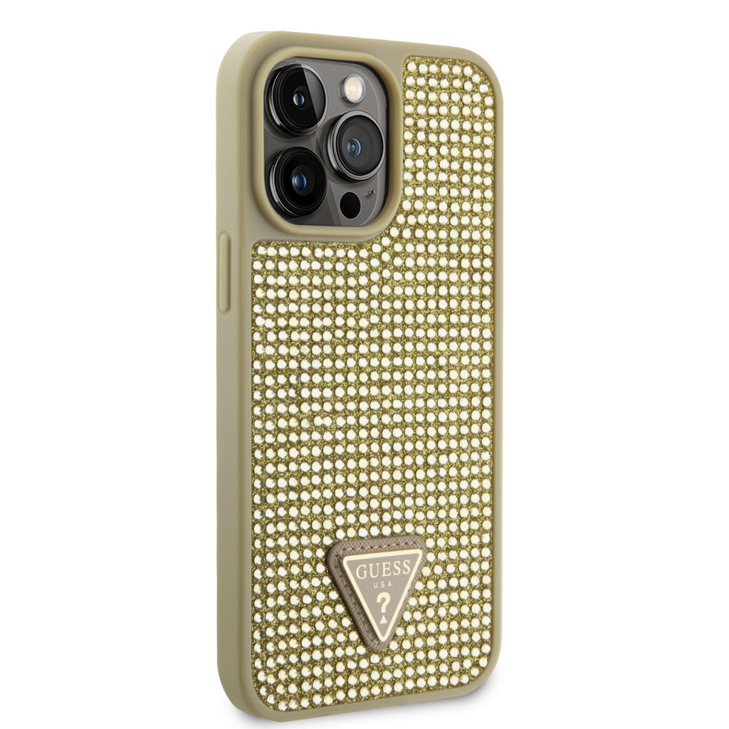 Guess Rhinestones Triangle Metal Logo iPhone 15 Pro Max hátlap, tok, arany