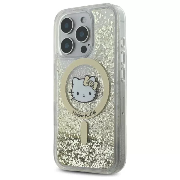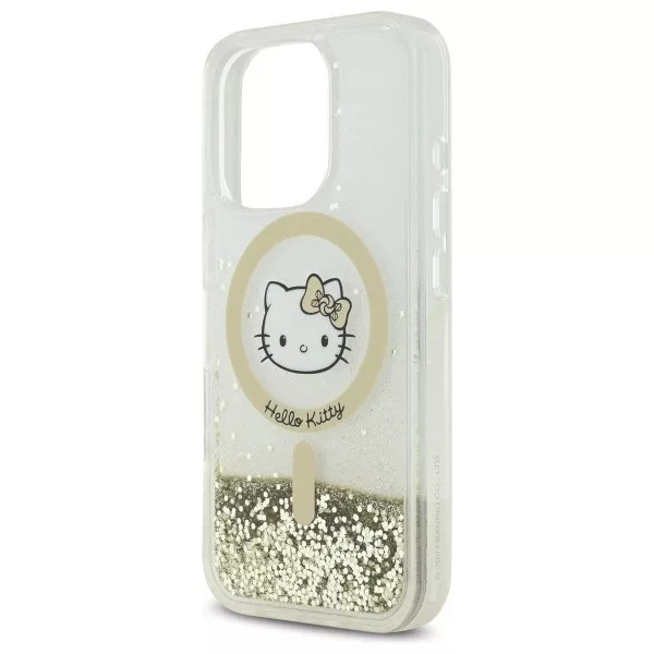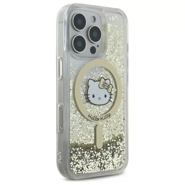 Hello Kitty HKHMP16LLGDIH iPhone 16 Pro, 6.3" tok, fehér-arany Liquid Glitter Fever MagSafe