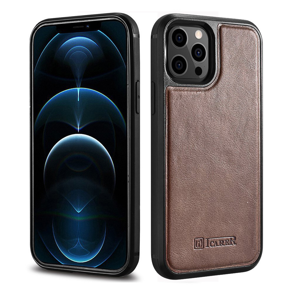 iCarer Leather Oil Wax iPhone 12 Pro Max eredeti bőr, hátlap, tok, barna