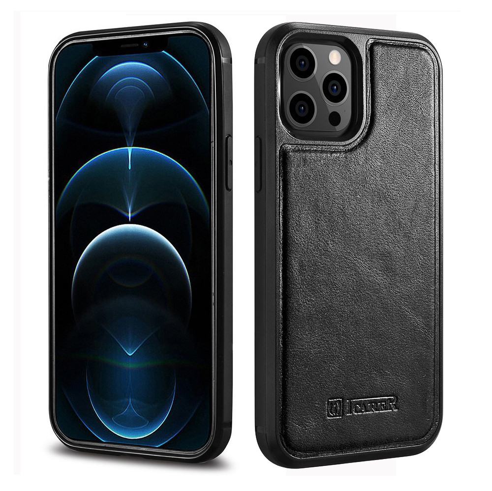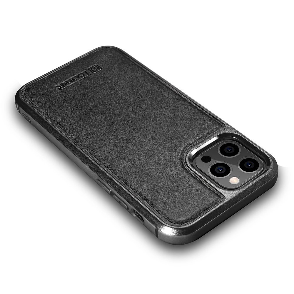 iCarer Leather Oil Wax iPhone 12 Pro Max eredeti bőr, hátlap, tok, fekete