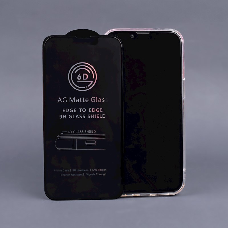 iPhone 13/13 Pro/14 Matt, 6D Full Glue teljes kijelzős edzett üvegfólia (tempered glass) 9H keménységű, matt-fekete