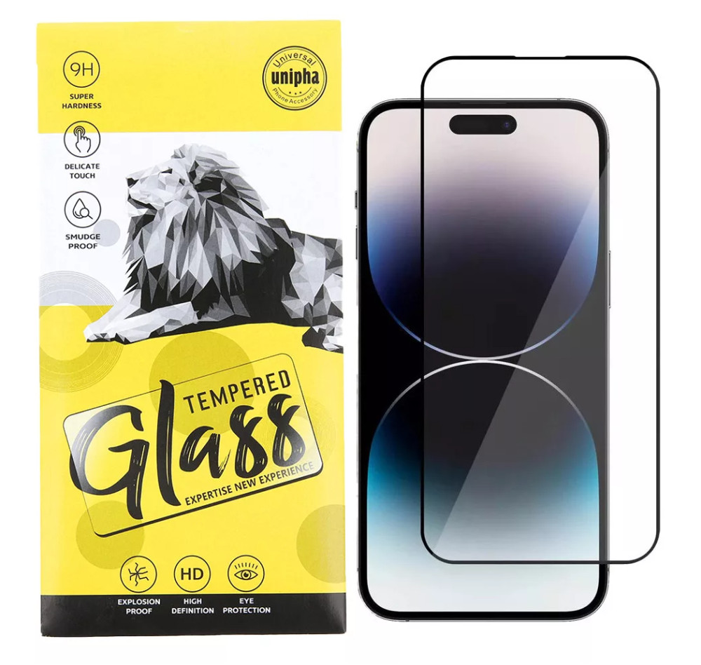 iPhone 15 Pro Max 9D Full Glue teljes kijelzős edzett üvegfólia, 9H keménységű, fekete