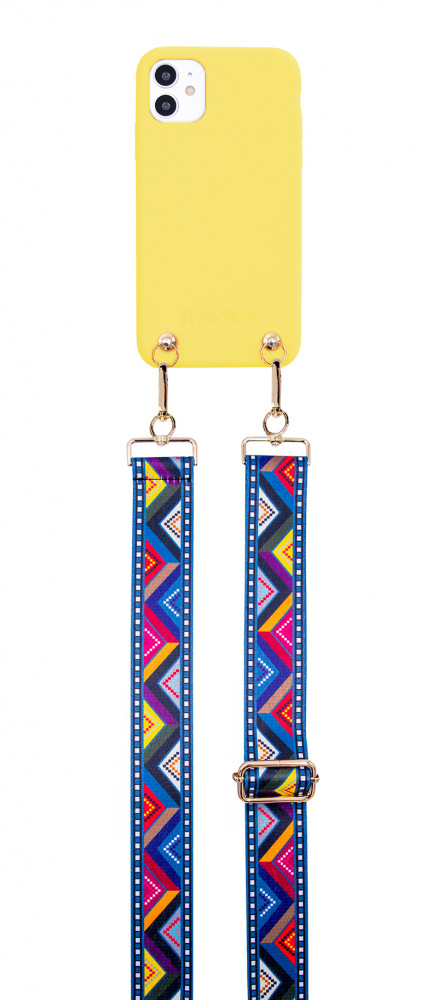 Iphoria iPhone 12/12 Pro Soft Touch Blue Ethno Strap nyakba akasztós hátlap, tok, sárga