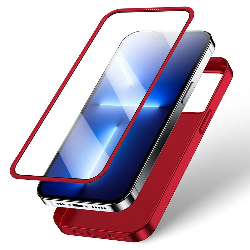 Joyroom 360 teljes tok borító iPhone 13 Pro Max hát- és elülső borítás + edzett üveg piros (JR-BP928 piros)
