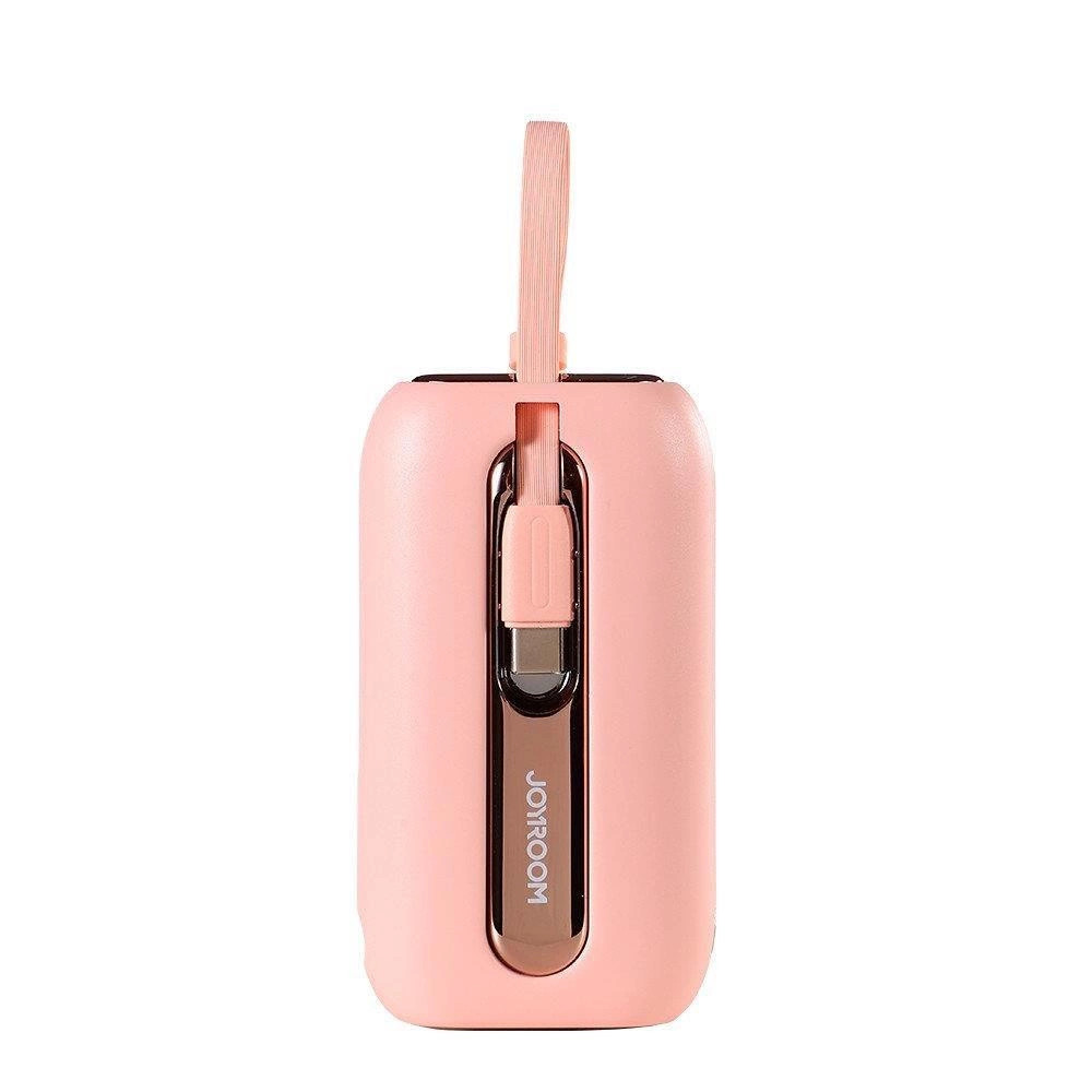 10000mAh kapacitású powerbank, akár 22,5 W teljesítménnyel és 2 beépített kábellel (USB C, Lightning) Joyroom Colorful Series JR-L012 – rózsaszín