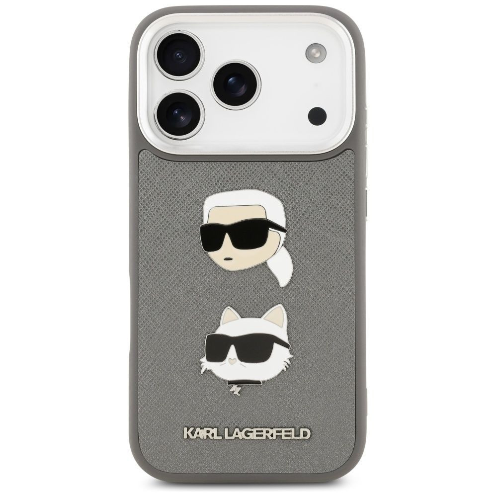 KARL LAGERFELD case for IPHONE 17 Pro KLHCP17LPSFDHPOG (FW Grained PU W/ K&C Heads Pin & Logo) gray