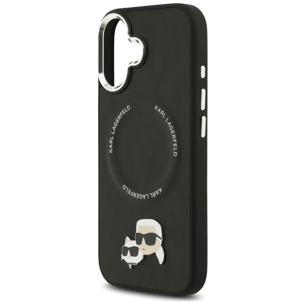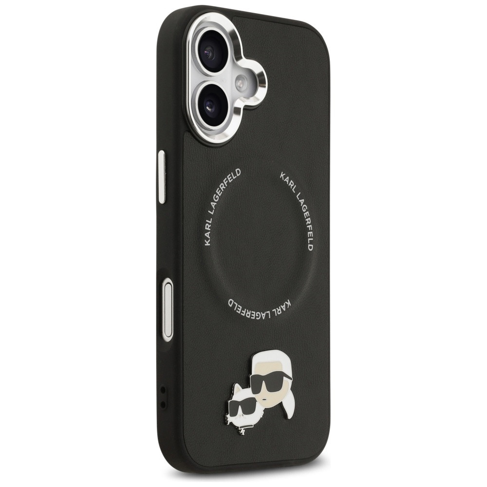 Karl Lagerfeld case Magsafe PU case Karl&Choupette heads pins logo and metal camera buttons iPhone 17 tok, fekete