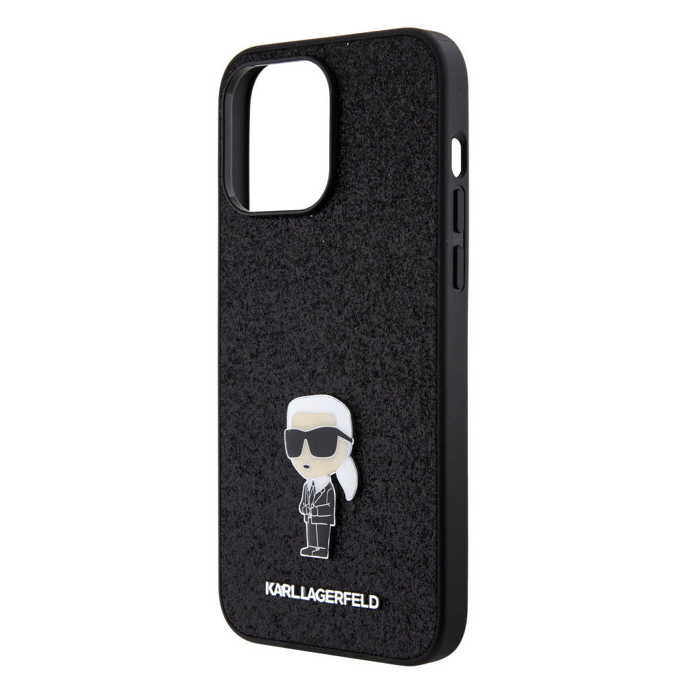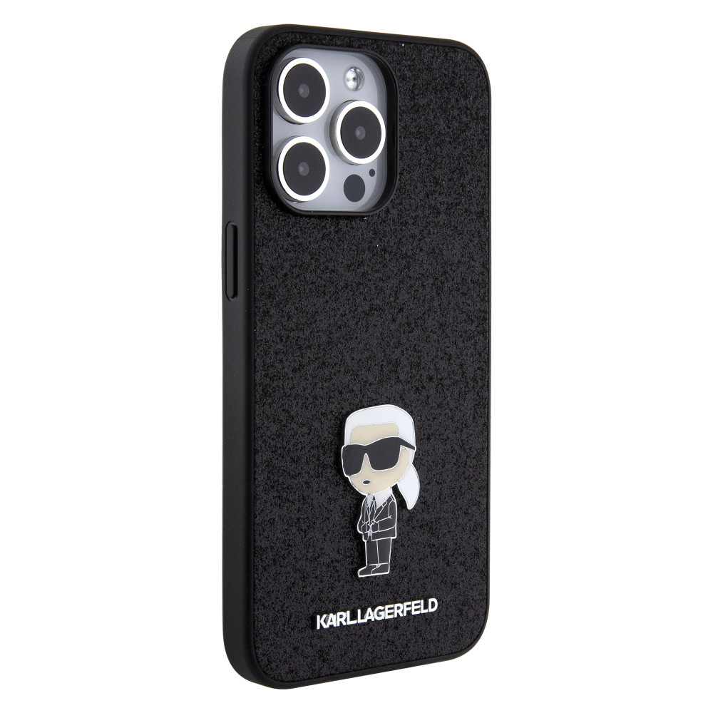 Karl Lagerfeld Fixed Glitter Metal Ikonik Case iPhone 15 Pro Max (KLHCP15XGKNPSK) hátlap, tok, fekete