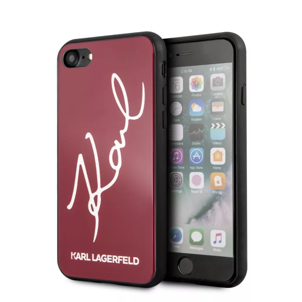 Karl Lagerfeld Hard Case Glitter Signature iPhone 6/6S/7/8/SE (2020) (KLHCI8DLKSRE) hátlap, tok, piros
