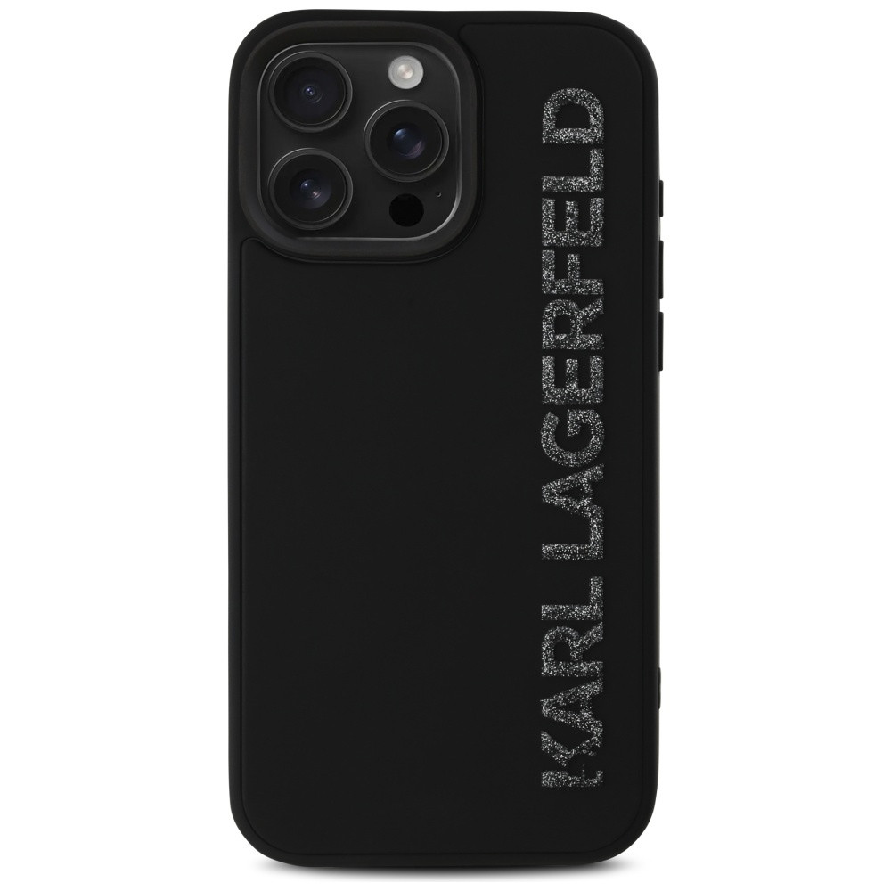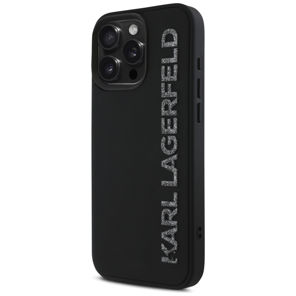 Karl Lagerfeld HC 3D Rubber Elongated Glitter iPhone 16 Pro Max tok, fekete