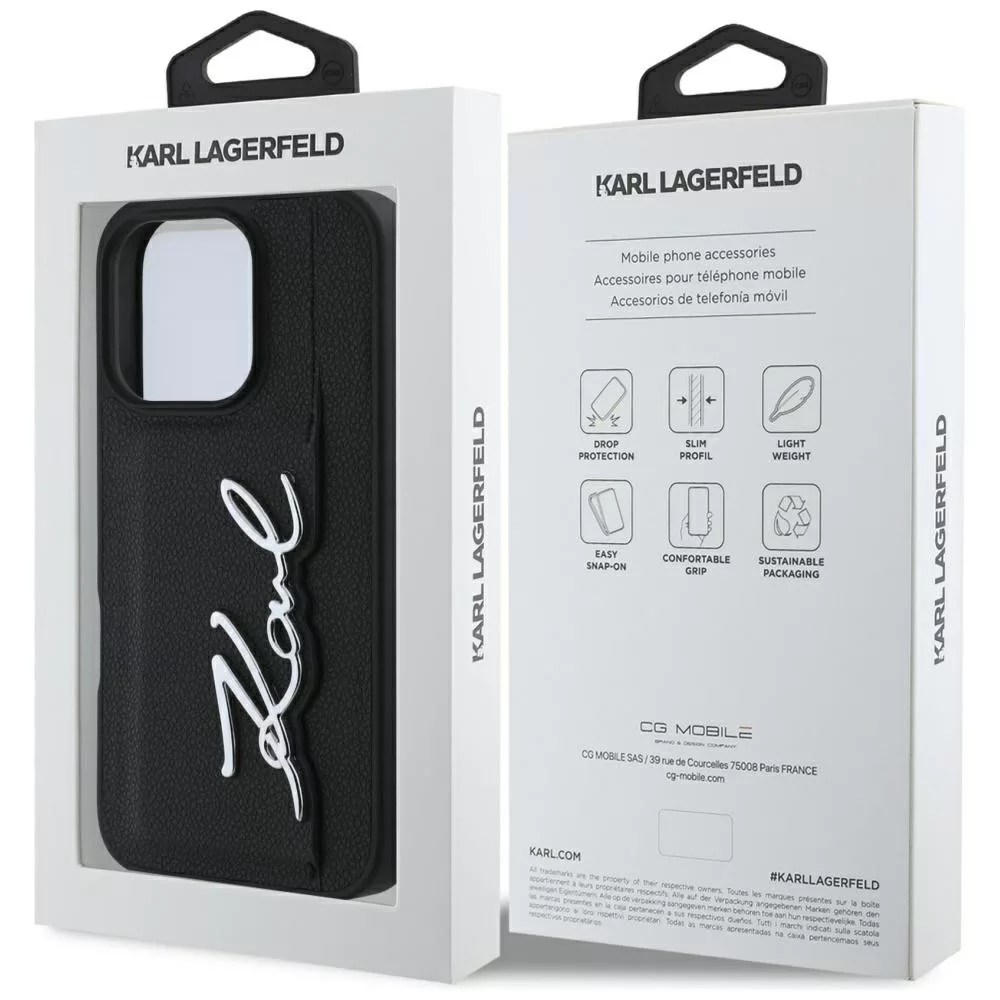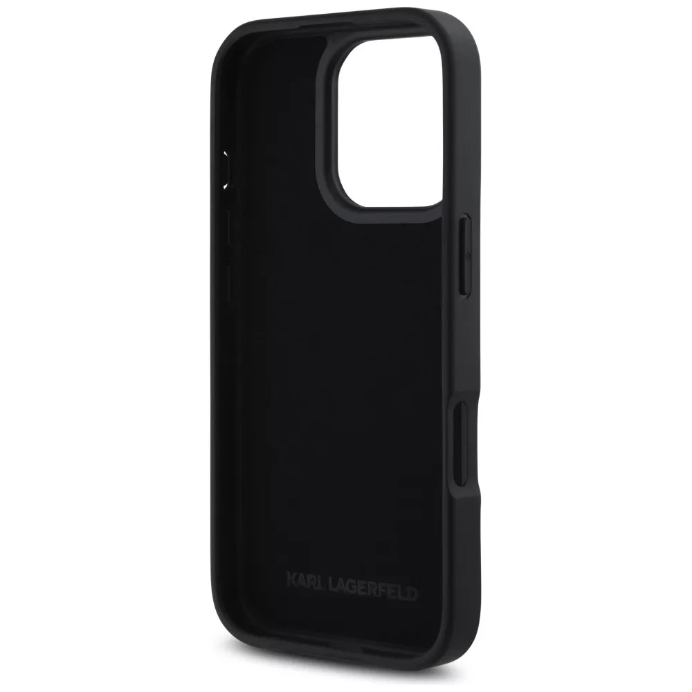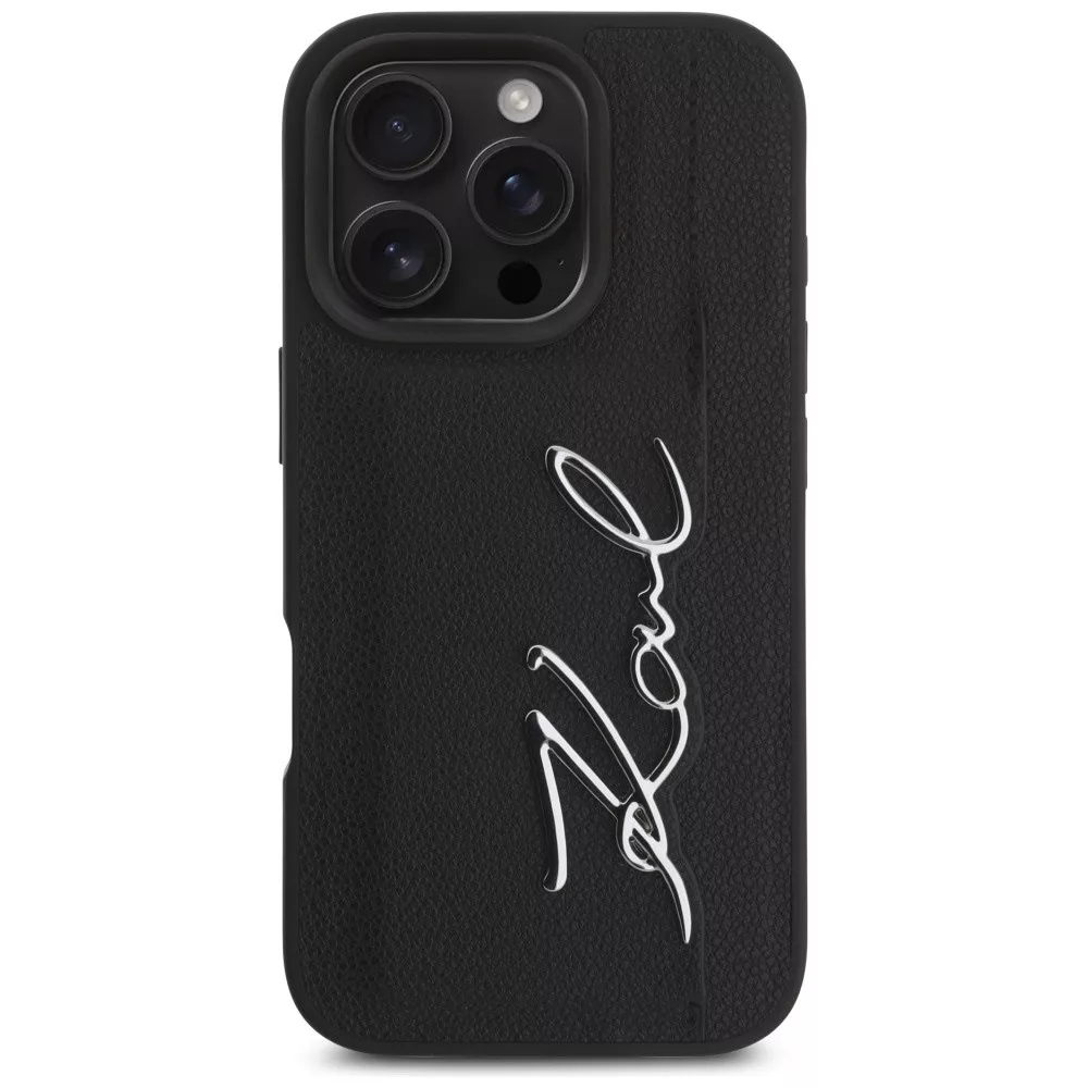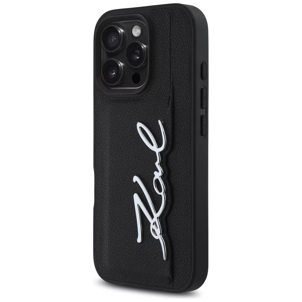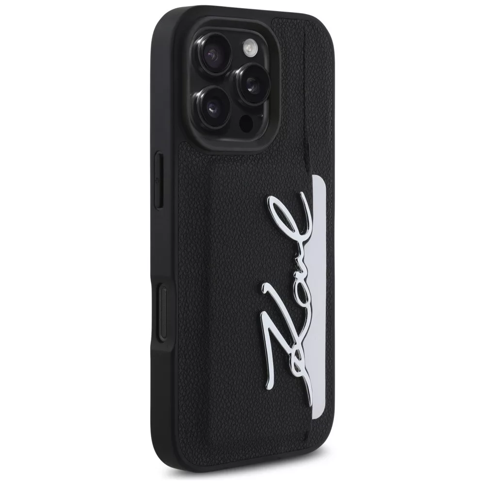 Karl Lagerfeld HC Grained PU Cardslot Metal Signature iPhone 16 Pro tok, fekete