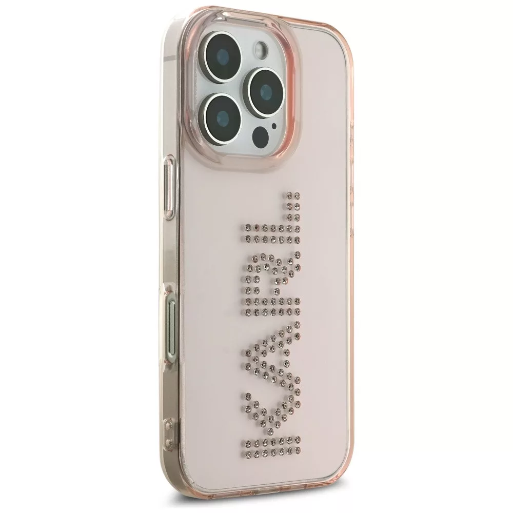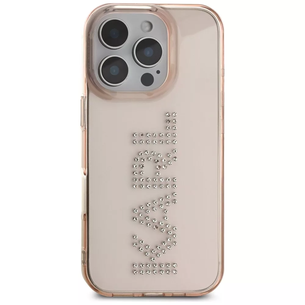 Karl Lagerfeld IML Rhinestones Logo iPhone 16 Pro Max tok, rózsaszín