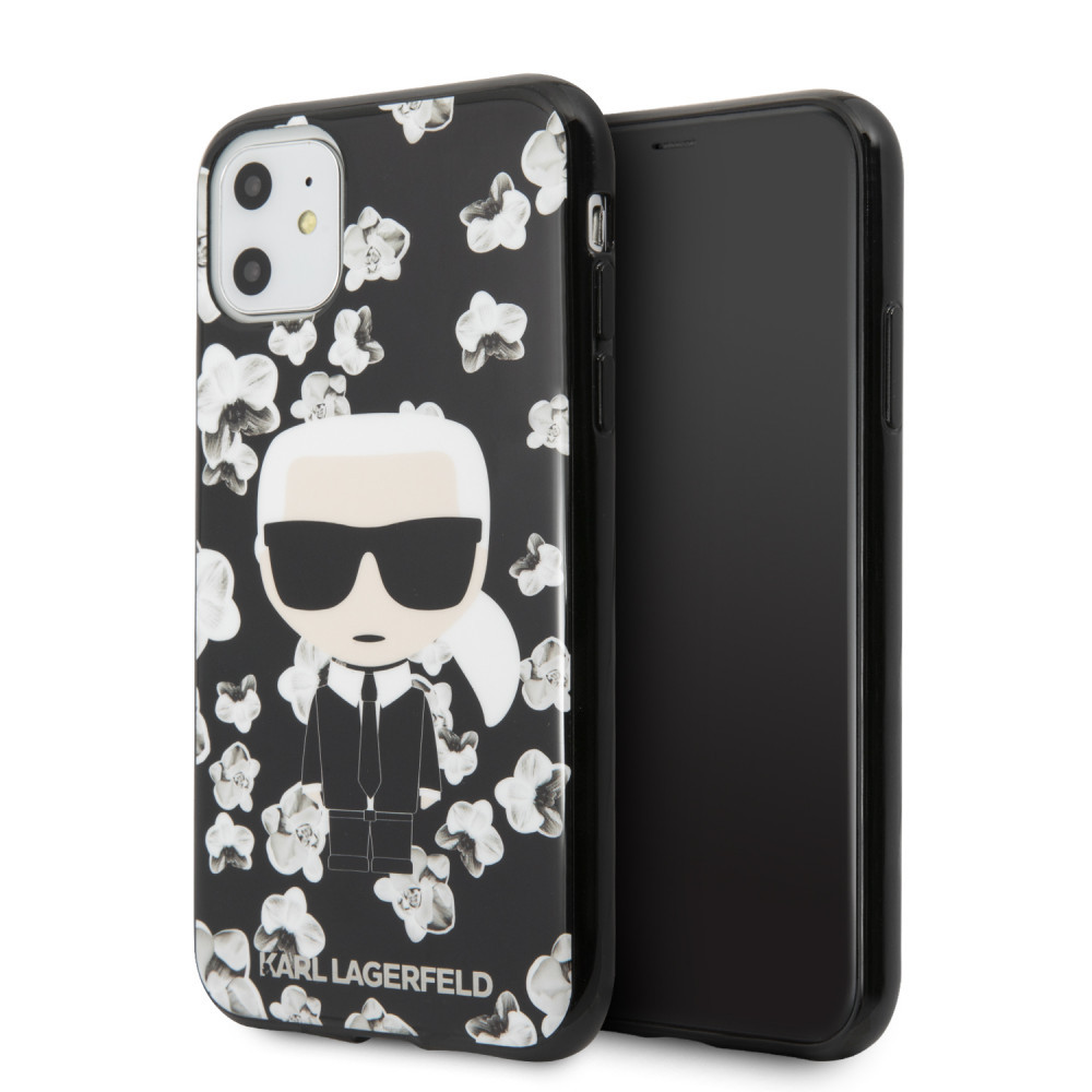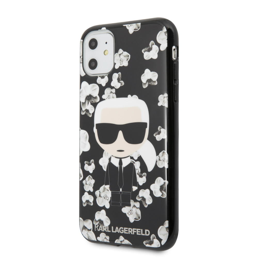 Karl Lagerfeld iPhone 11 Flower Karl Iconic (KLHCN61FLFBBK) hátlap, tok, fekete