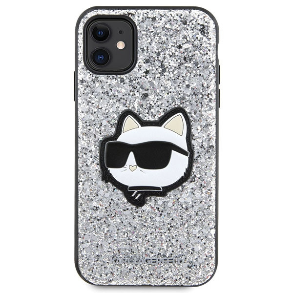 Karl Lagerfeld iPhone 11/Xr Glitter Choupette Patch (KLHCN61G2CPS) hátlap, tok, ezüst