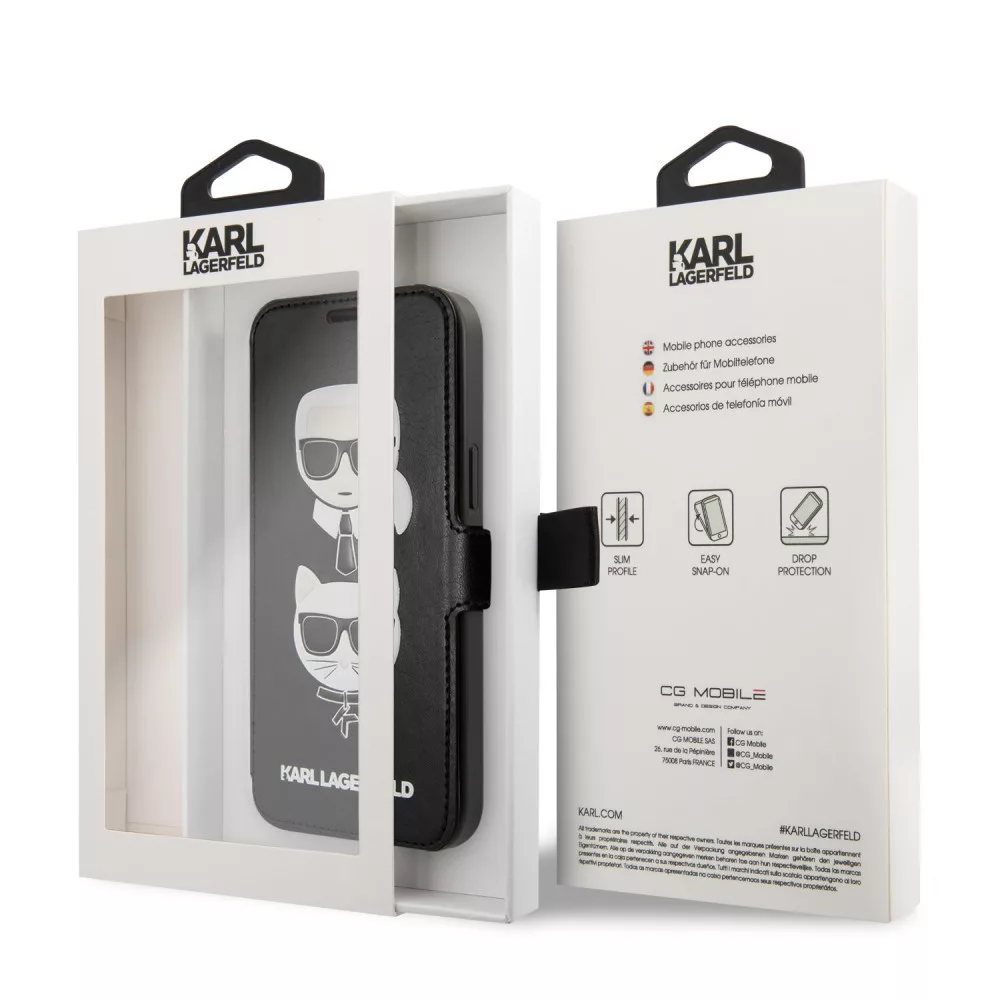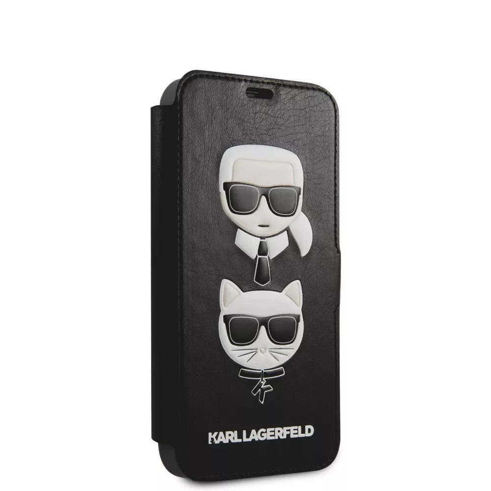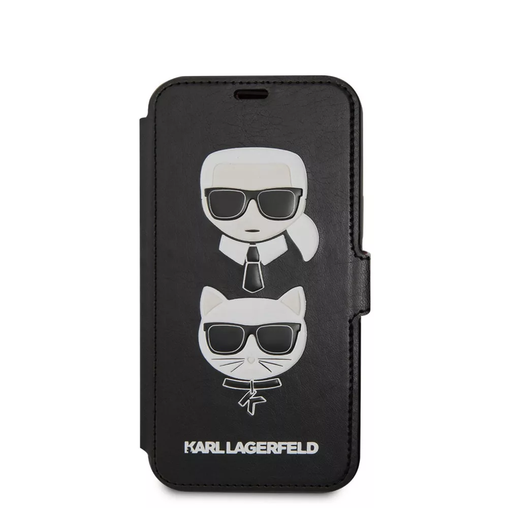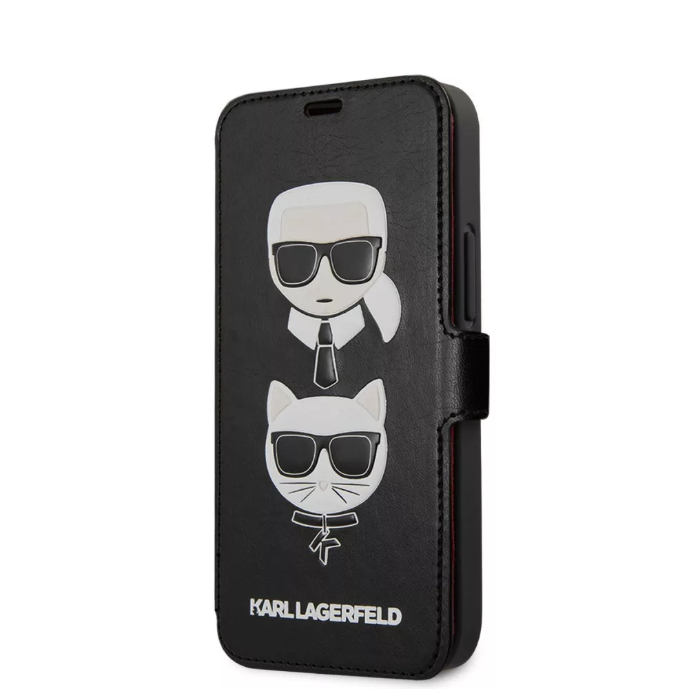 Karl Lagerfeld iPhone 12 Mini 3D Rubber Heads (KLFLBKSP12SFKICKC) oldalra nyíló tok, fekete