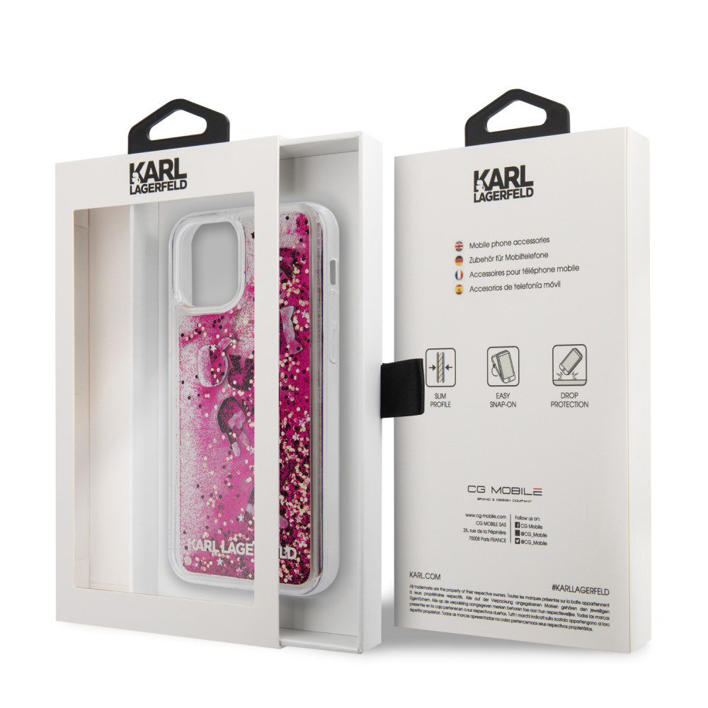 Karl Lagerfeld iPhone 12 Mini Floating Charms Liquid Glitter Iconic (KLHCP12SROPI) hátlap, tok, rózsaszín