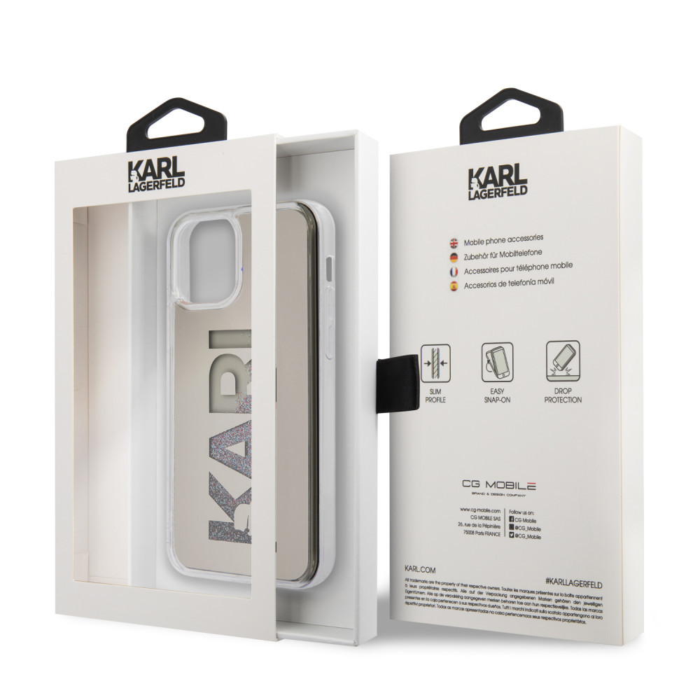 Karl Lagerfeld iPhone 12 Mini Karl Logo Glitter Mirror (KLHCP12SKLMLGR) hátlap, tok, ezüst