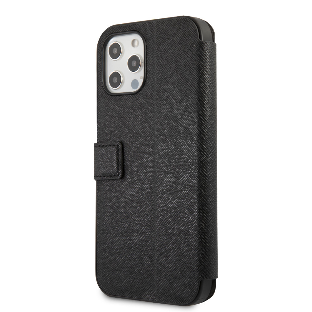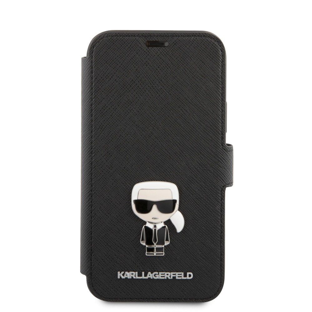Karl Lagerfeld iPhone 12 Pro Max Saffiano Ikonik Metal (KLFLBKP12LIKMSBK) oldalra nyíló tok, fekete