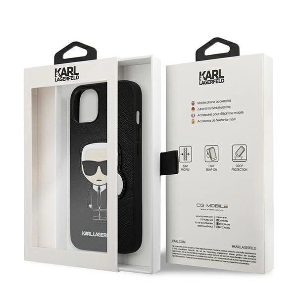 Karl Lagerfeld iPhone 13 Mini 5,4" KLHCP13SOKPK Saffiano Ikonik Karl's Patch hátlap, tok, fekete