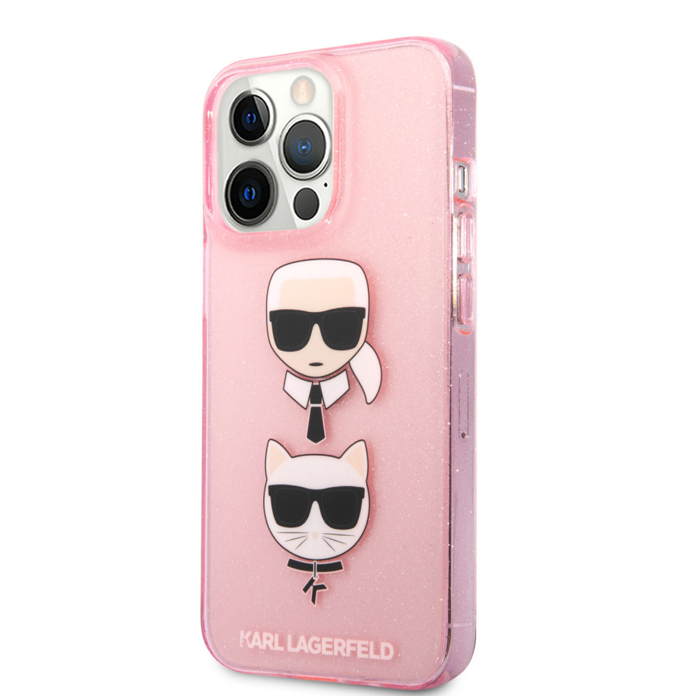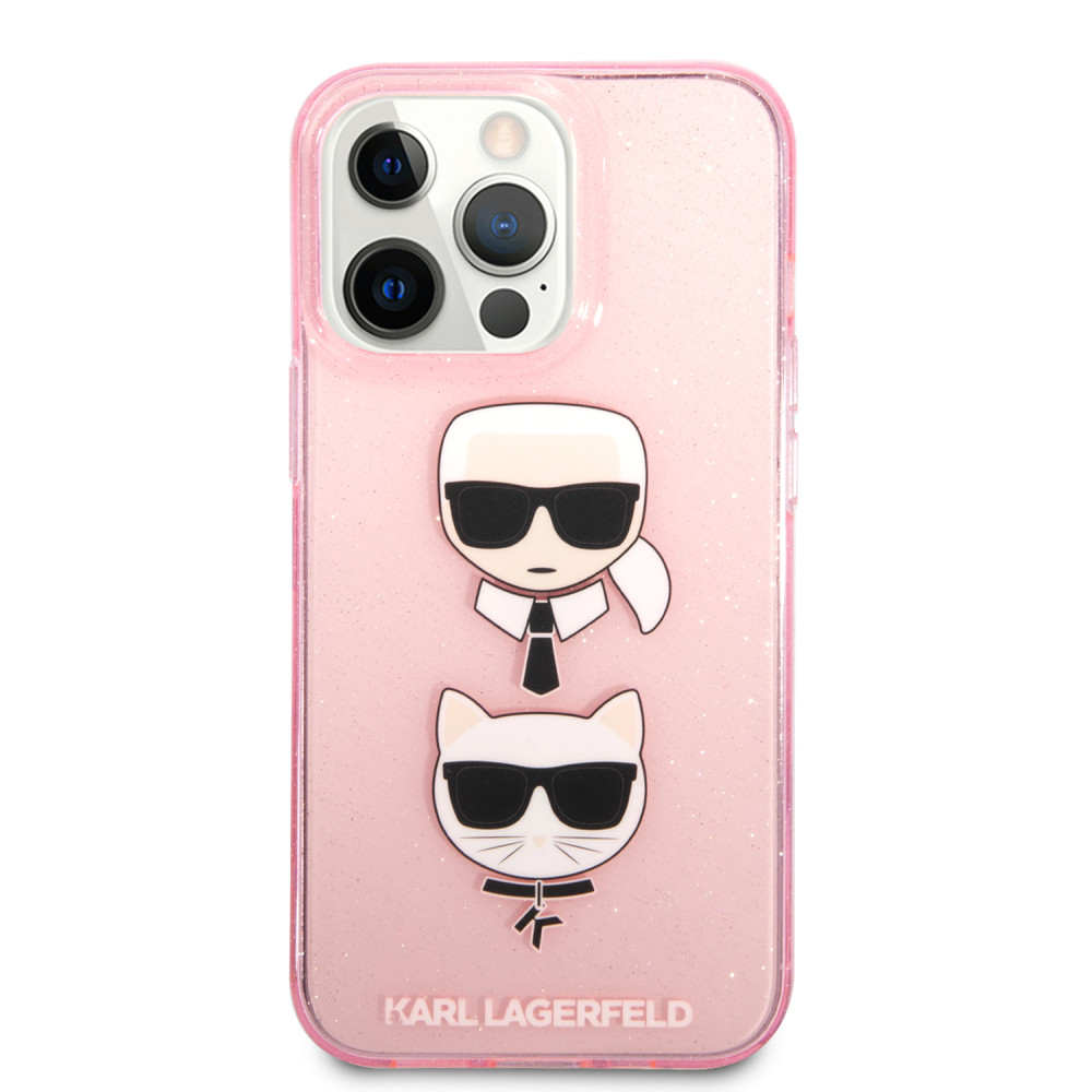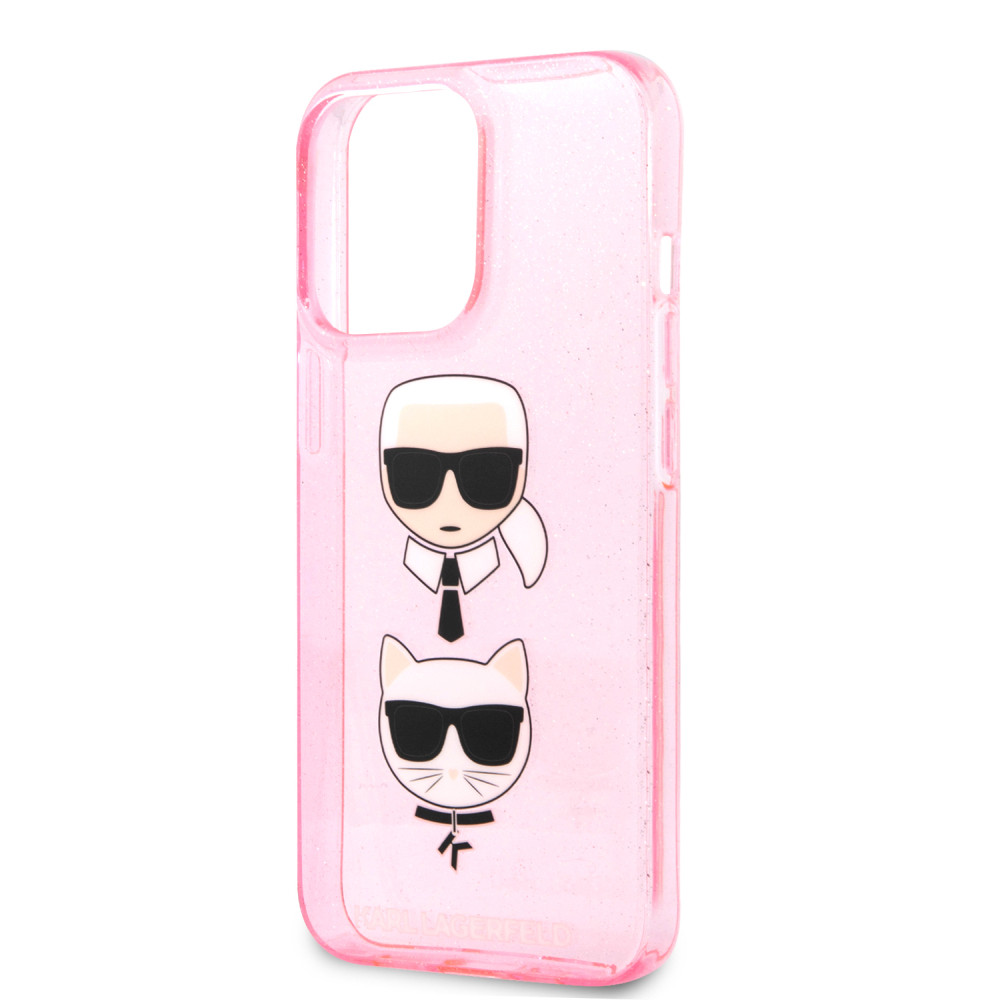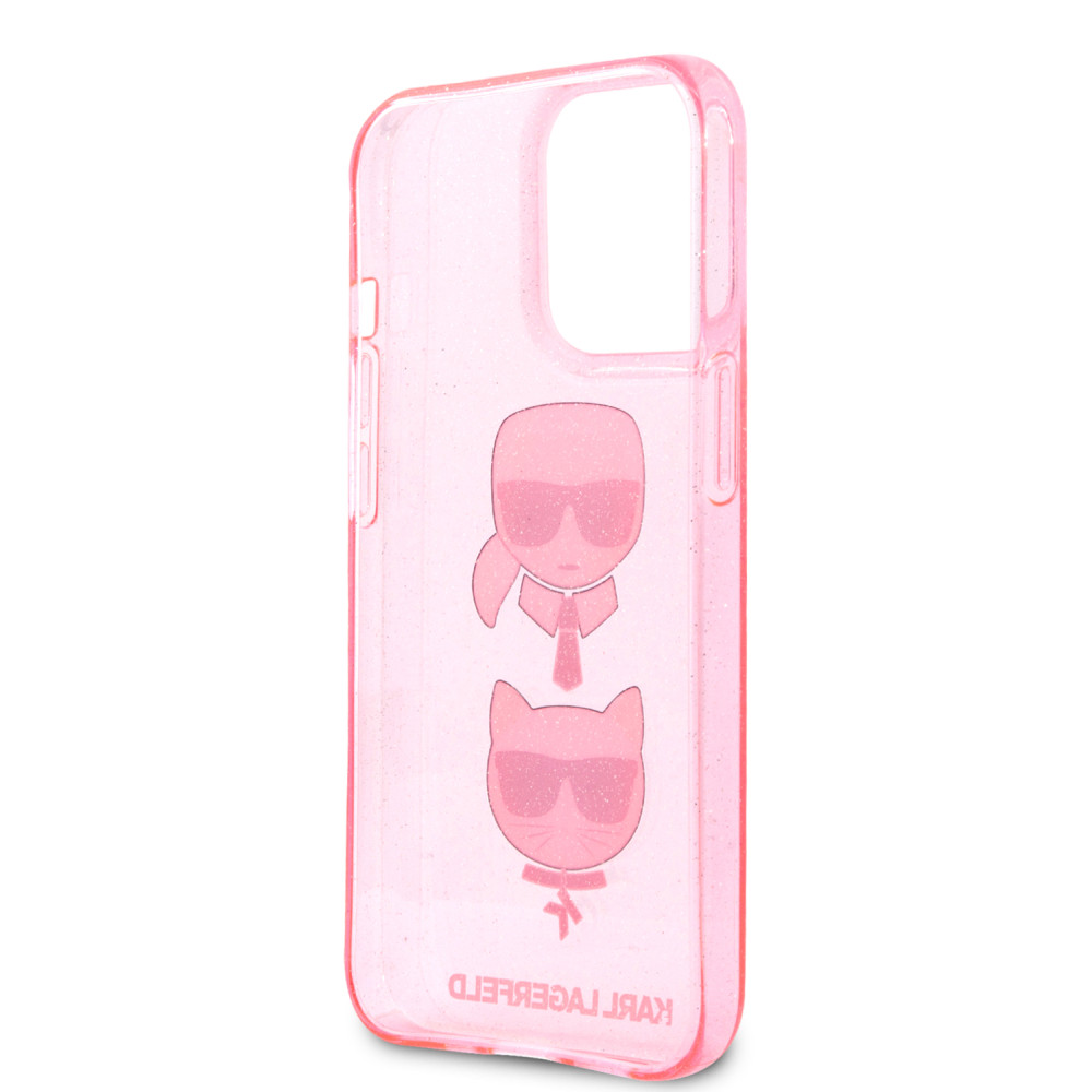 Karl Lagerfeld iPhone 13 Pro Karl & Choupette Head Glitter (KLHCP13LKCTUGLP) hátlap, tok, rózsaszín