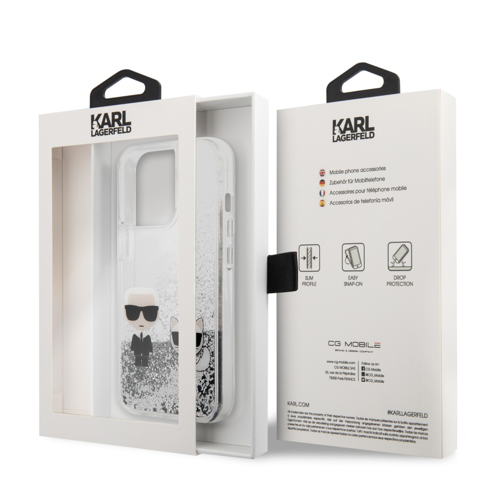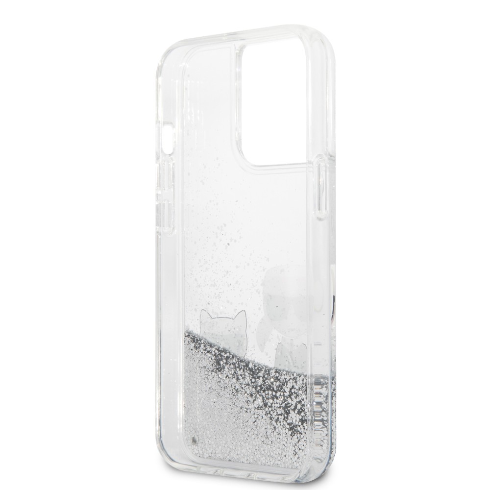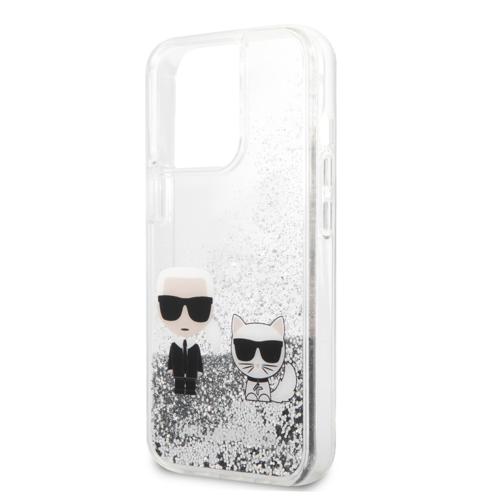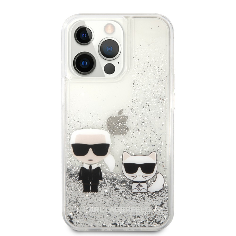 Karl Lagerfeld iPhone 13 Pro Liquid Glitter Karl & Choupette (KLHCP13LGKCS) hátlap, tok, ezüst