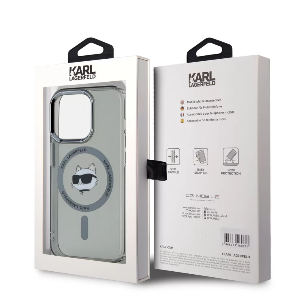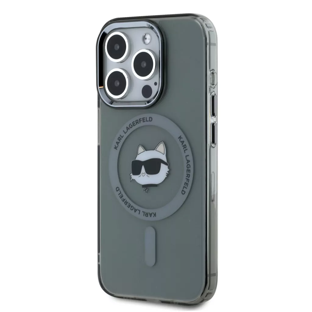 Karl Lagerfeld iPhone 15 Pro Max IML Choupette Head Metal Frame KLHMP15XHLSCHK MagSafe hátlap, tok, fekete