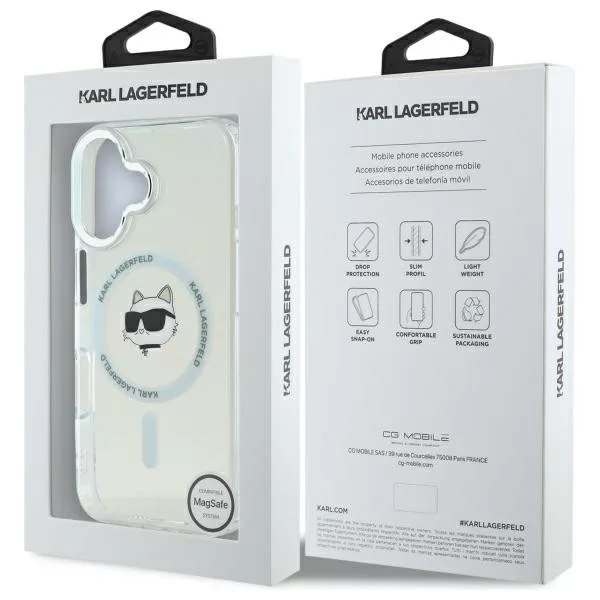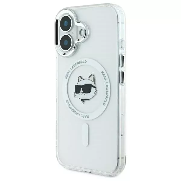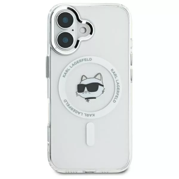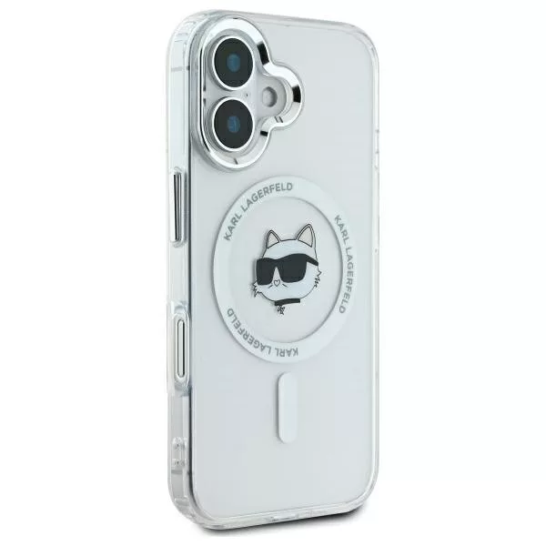 Karl Lagerfeld iPhone 16 Magsafe IML Metal Choupette Head (KLHMP16SHLSCHH) MagSafe hátlap, tok, fehér
