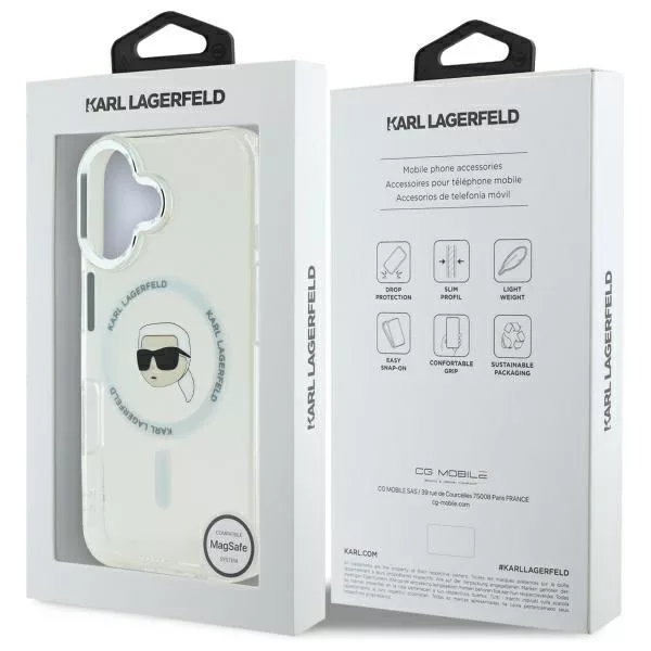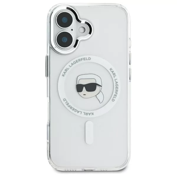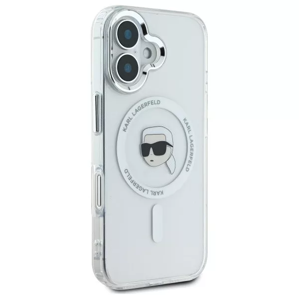 Karl Lagerfeld iPhone 16 Magsafe IML Metal Karl Head (KLHMP16SHLSKIH) MagSafe hátlap, tok, fehér