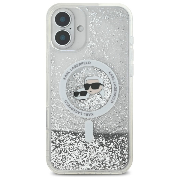 Karl Lagerfeld iPhone 16 Magsafe Liquid Glitter Karl&Choupette Head (KLHMP16SLGKCSGH) MagSafe hátlap, tok, ezüst-átlátszó