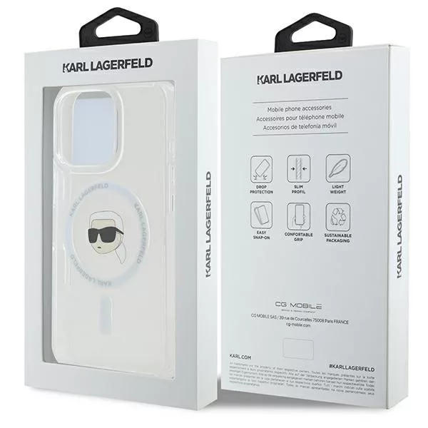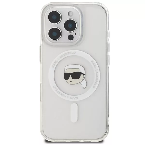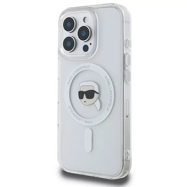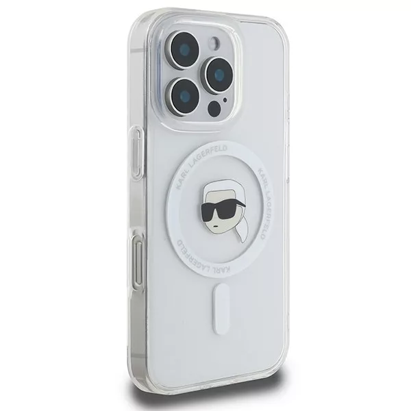 Karl Lagerfeld iPhone 16 Pro Magsafe IML Metal Karl Head (KLHMP16LHLSKIH) MagSafe hátlap, tok, fehér