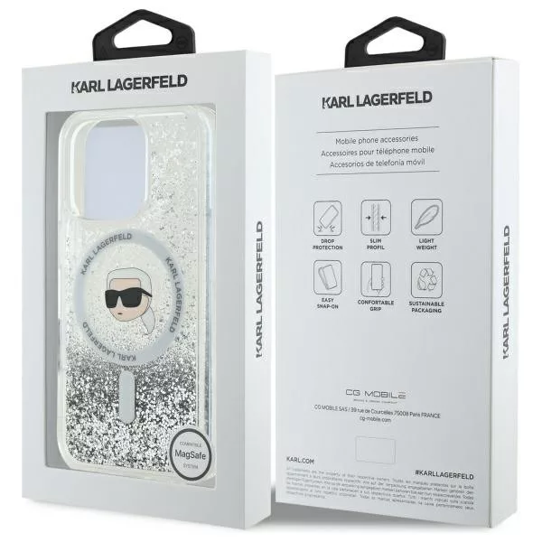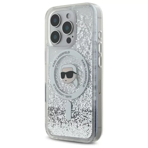 Karl Lagerfeld iPhone 16 Pro Magsafe Liquid Glitter Karl Head (KLHMP16LLGKISGH) MagSafe hátlap, tok, átlátszó