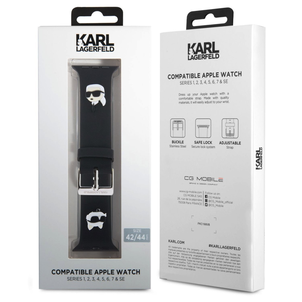 Karl Lagerfeld Karl and Choupette Head NFT Watch óraszíj (KLAWLSLKCNK) Apple Watch 42/44/45/49 mm szilikon óraszíj, fekete