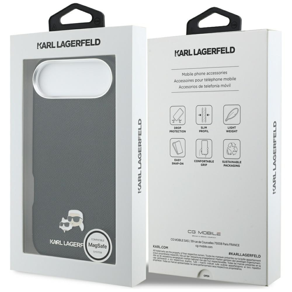 Karl Lagerfeld Karl & Choupette Head Pins Saffiano MagSafe Case iPhone 17 Air tok, fekete