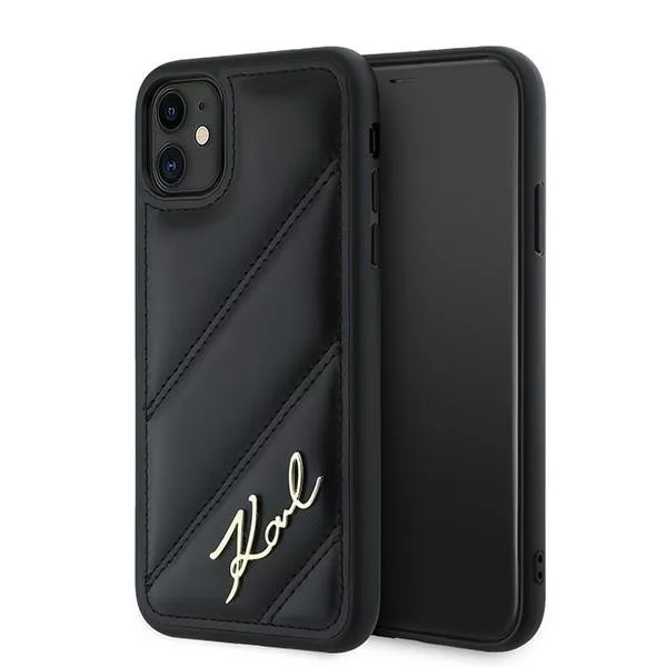 Karl Lagerfeld KLHCN61PQDSMGK Diagonal Quilted Script iPhone 11/Xr 6.1", hátlap, tok, fekete