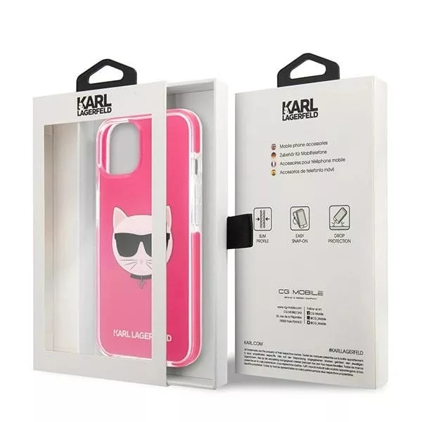 Karl Lagerfeld KLHCP13dbPECPI Choupette Head iPhone 13 mini 5.4" hátlap, tok, rózsaszín