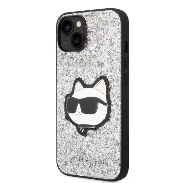 Karl Lagerfeld KLHCP14MG2CPS Glitter Choupette Patch iPhone 14 Plus/15 Plus 6,7", hátlap, tok, ezüst