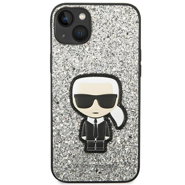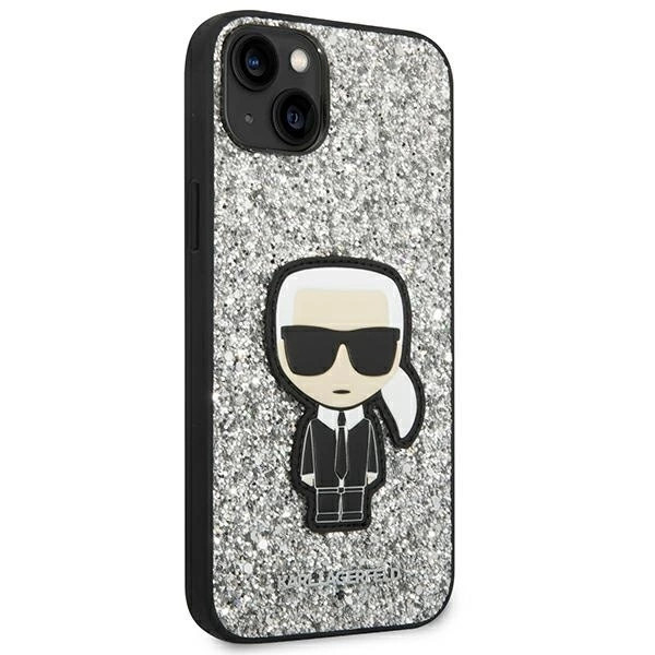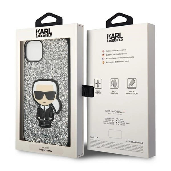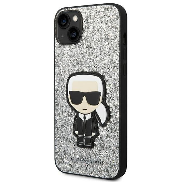 Karl Lagerfeld KLHCP14MGFKPG Glitter Flakes Ikonik iPhone 14 Plus/15 Plus 6,7" hátlap, tok, ezüst