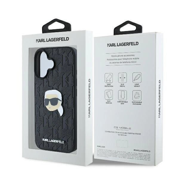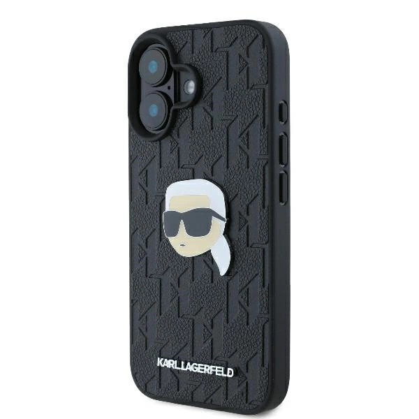Karl Lagerfeld KLHCP16SPGKLKIPK iPhone 16 6.1" hardcase Monogram Karl Head Pin tok, fekete