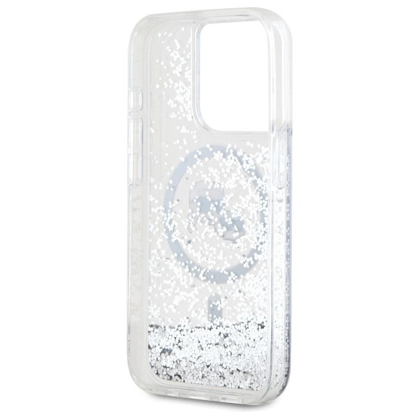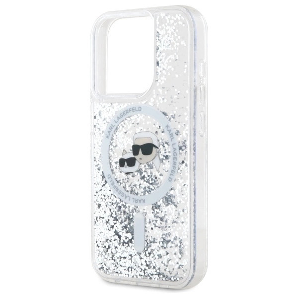 Karl Lagerfeld KLHMP15LLGKCSGH iPhone 15 Pro 6.1" Liquid Glitter Karl&Choupette Head Magsafe tok, átlátszó