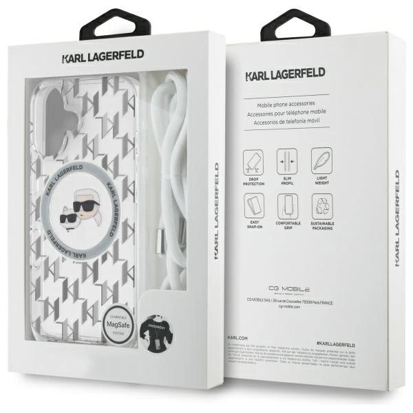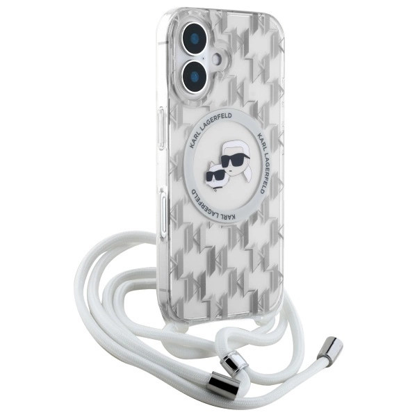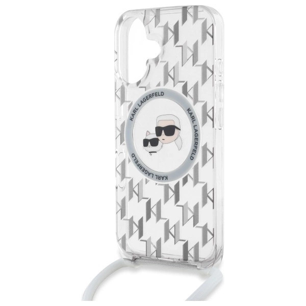 Karl Lagerfeld KLHMP16SHCKCKLCT iPhone 16 6.1" IML Crossbody Monogram Karl & Choupette Head MagSafe tok, átlátszó
