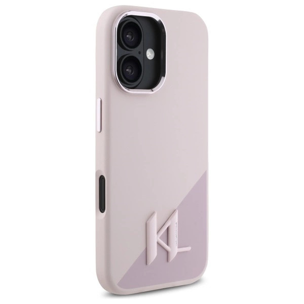 Karl Lagerfeld KLHMP16SSCMKMPCP iPhone 16 6.1" Silicone Shadow Metal Initial MagSafe tok, rózsaszín