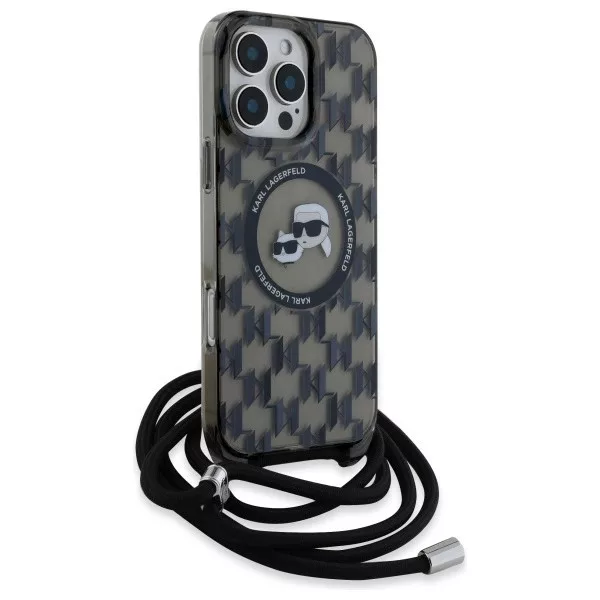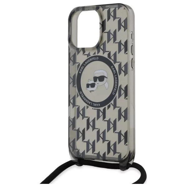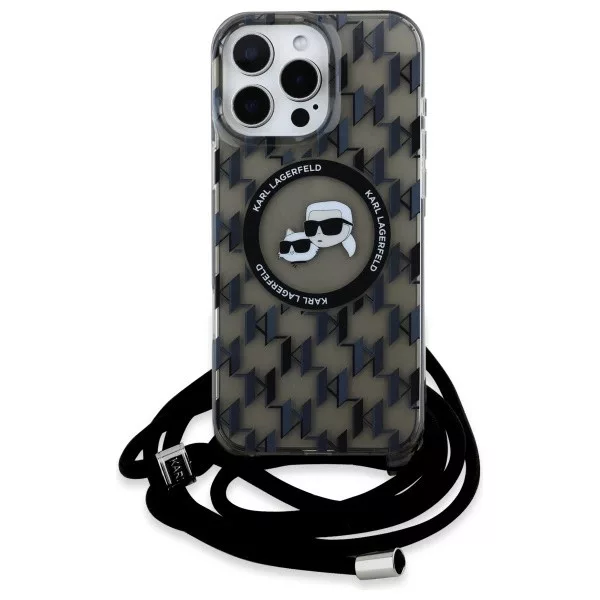 Karl Lagerfeld KLHMP16XHCKCKLCK iPhone 16 Pro Max 6.9" IML Crossbody Monogram Karl & Choupette Head MagSafe tok, fekete
