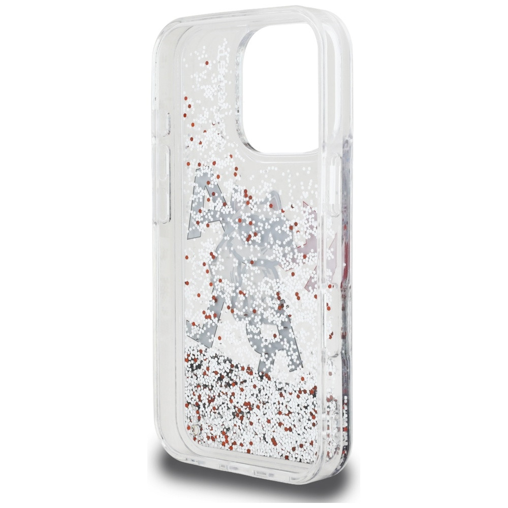 Karl Lagerfeld Liquid Glitter Choupette Logo iPhone 16 Pro tok, átlátszó