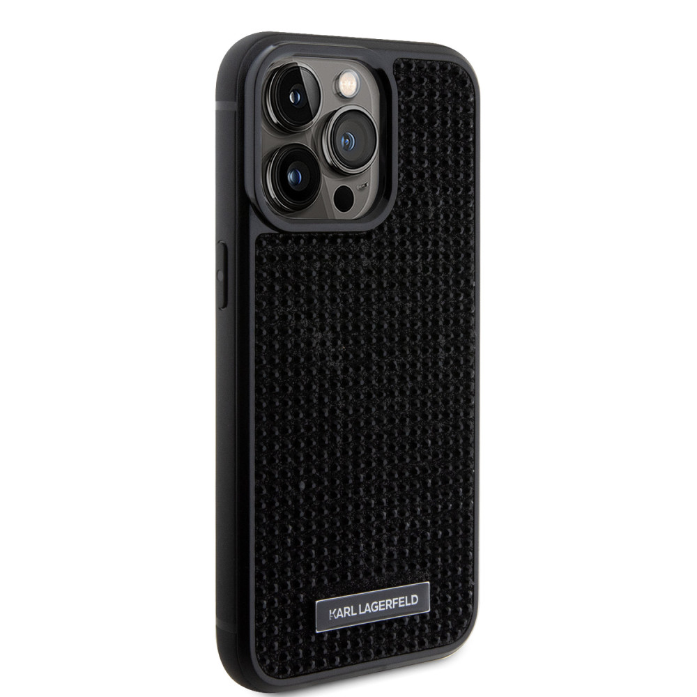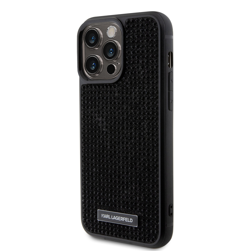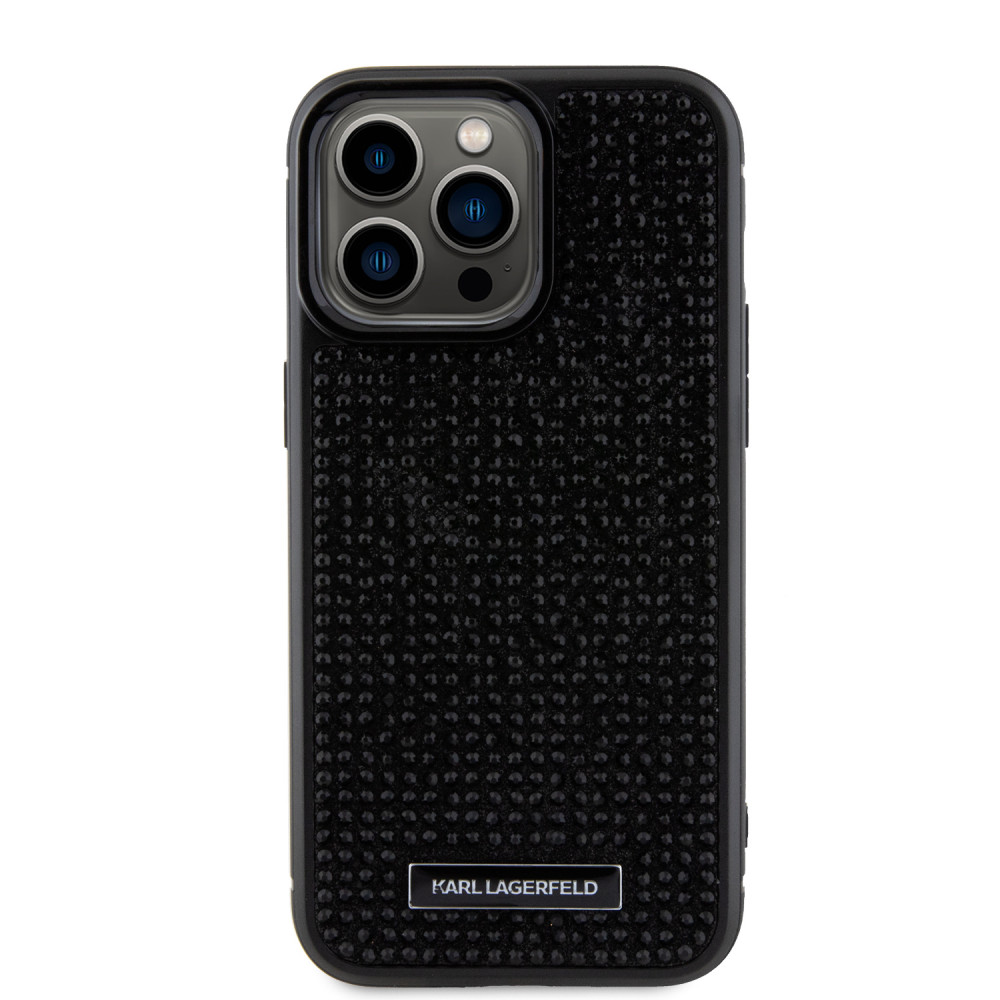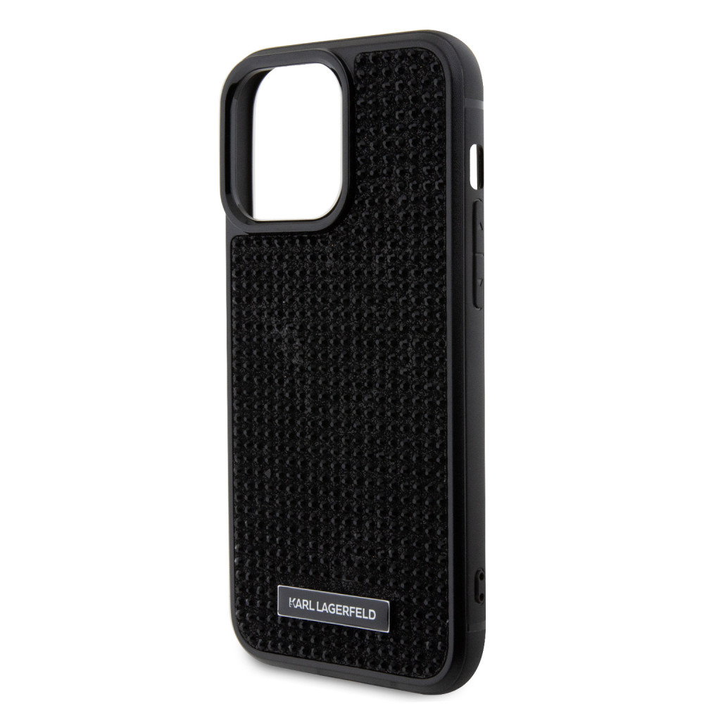 Karl Lagerfeld Rhinestone Plate Metal Logo Case iPhone 15 Pro Max (KLHCP15XHDSPLK) hátlap, tok, fekete